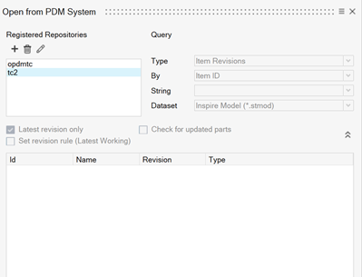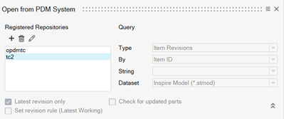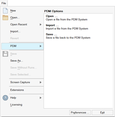 Open a model from your PDM system, or import a saved model from the PDM system and merge it with the current model.