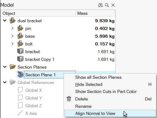 section cut is aligned with the current view, right-click the section plane in the