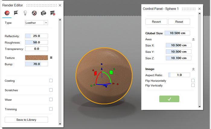 Define the color, reflectivity, roughness, transparency, and more.