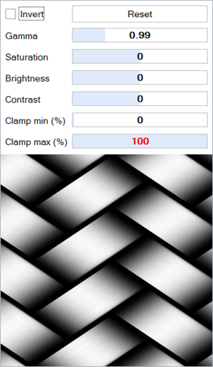 - Clamp min (%) and Clamp max (%): Specify the minimum and maximum clamp of the selected texture. RGB colors normally range from 0 to 255. By setting, for example, the minimum clamp to 20%, the colors with RGB values less than around 51 will be “cut” and get this value. By increasing minimum clamp percentage, the image turns whiter, while decreasing the maximum clamp percentage results in darker image colors. By decreasing the maximum percentage and increasing the minimum at the same time, textures tend to appear grayer, as gray colors has RGV values around the middle of the 256 colors (128, 128, 128).