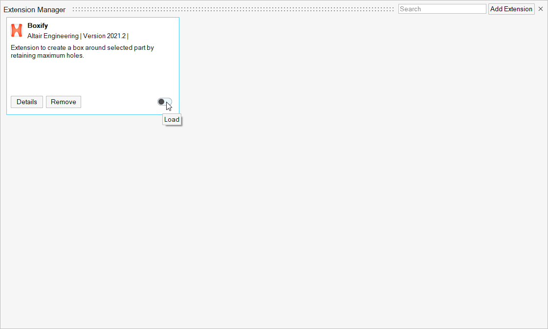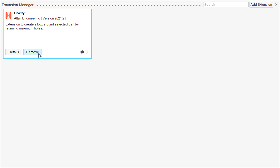 Click Remove to unregister an extension and remove it from the Extension Manager.