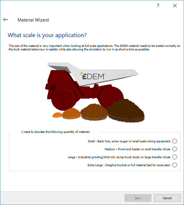 Note: You can select one of these materials.- The top material corresponds to the input angle of repose the best. You can, however, choose different materials from the list.