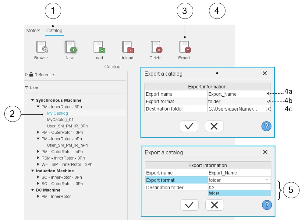 | 4c | Folder in which the exported catalog will be stored. |