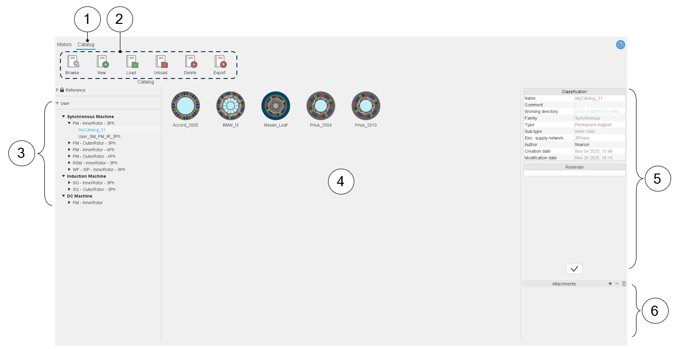 | 1 | Selection of the catalog area of the Motor Catalog application. |