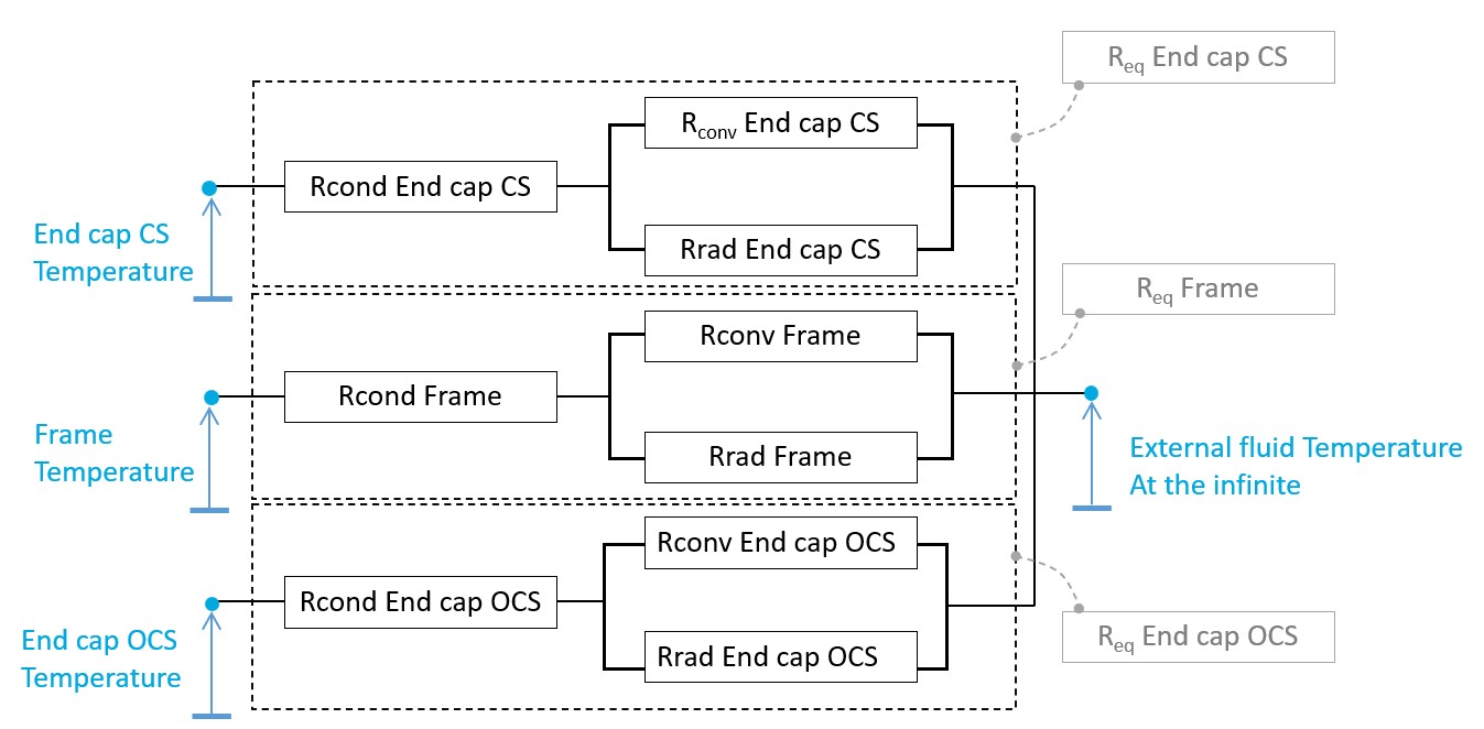 Figure 1. The global resistance between the frame and the external fluid - Thermal resistance network