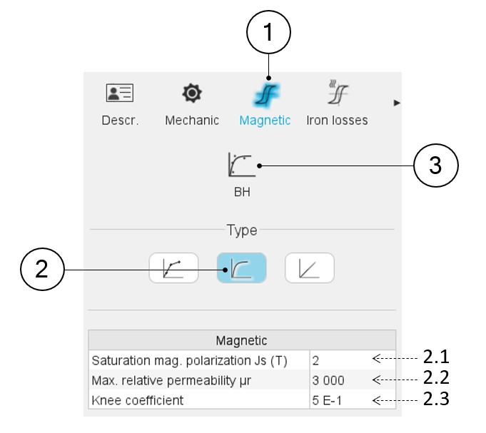 | 2 | Nonlinear B(H) curve: by providing the three coefficients of the nonlinear analytical model |