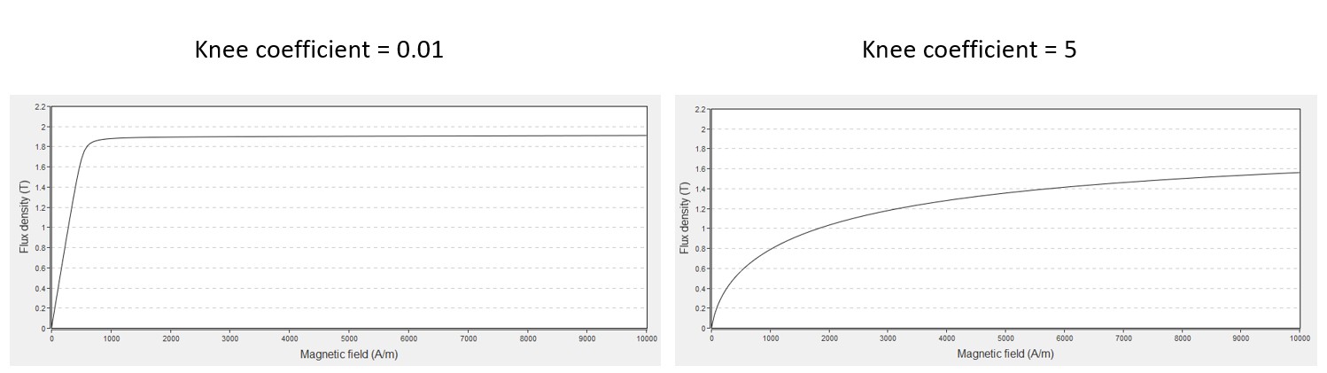 The impact of the knee coefficient “a” on the shape of the B(H) curve is illustrated in the below figure.
