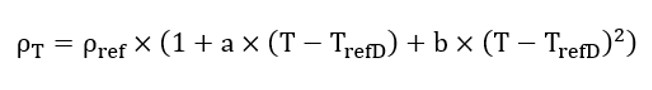 | b | Mass density second order temperature coefficient at T refD | K-2 |