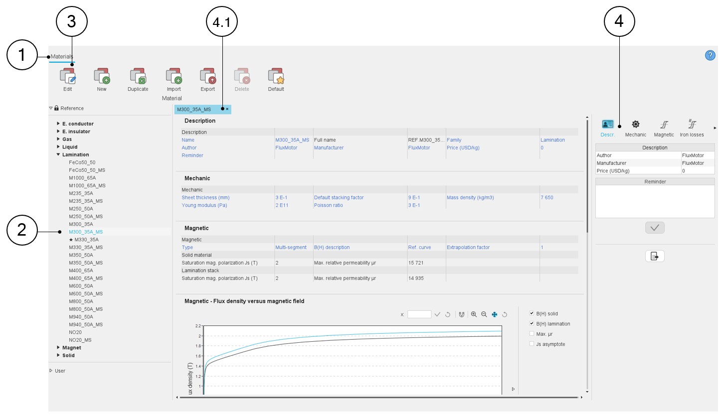 | 3 | Edit the material by clicking on “Edit” in the “Materials” top menu or by using the right mouse button on the selected material of the user material database. |