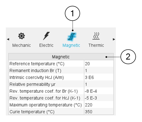 - Edit the material properties navigating through the different physical domains via the scrolling selection bar.