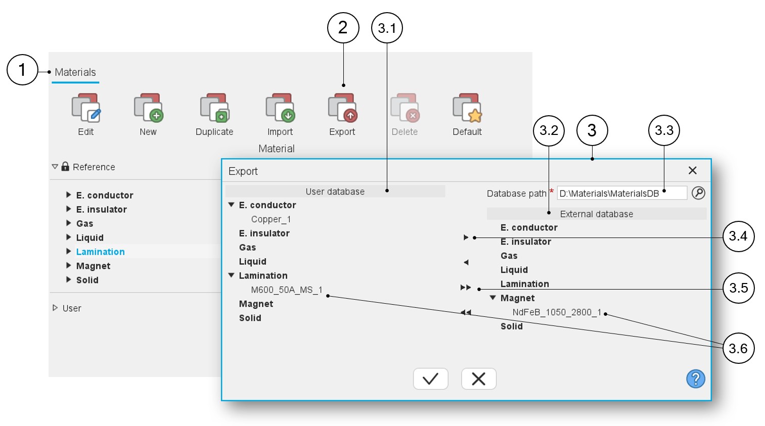 | 3.1 | User materials database from which materials are to be exported are stored. |
