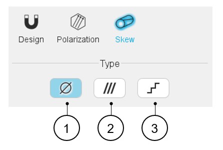 - Type of step skewThe design of the magnet can be considered with three kinds of step skew: