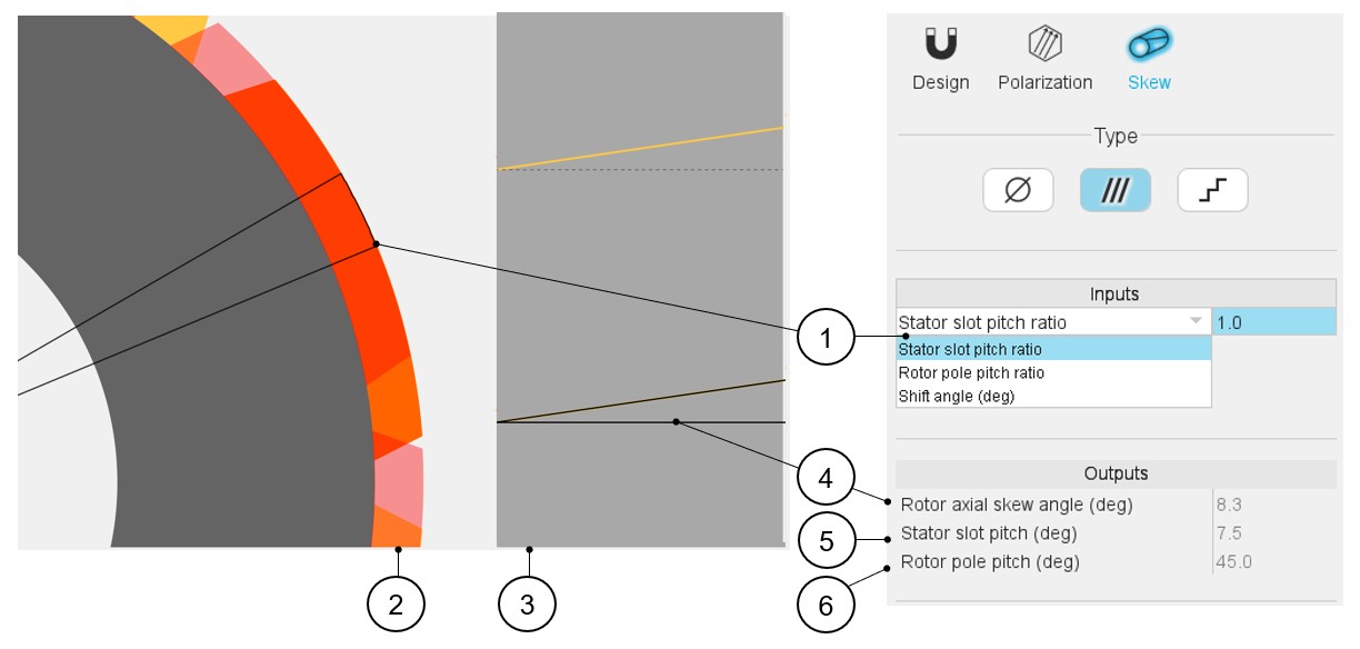 | 3 | Visualization of the equivalent rotor axial skew angle on the machine-developed view. |