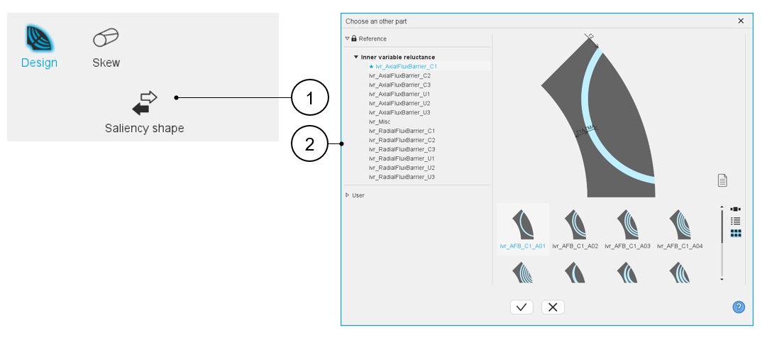 | 2 | Dialog box to visualize and to select the topologies of saliencies from the saliency part libraries. |
