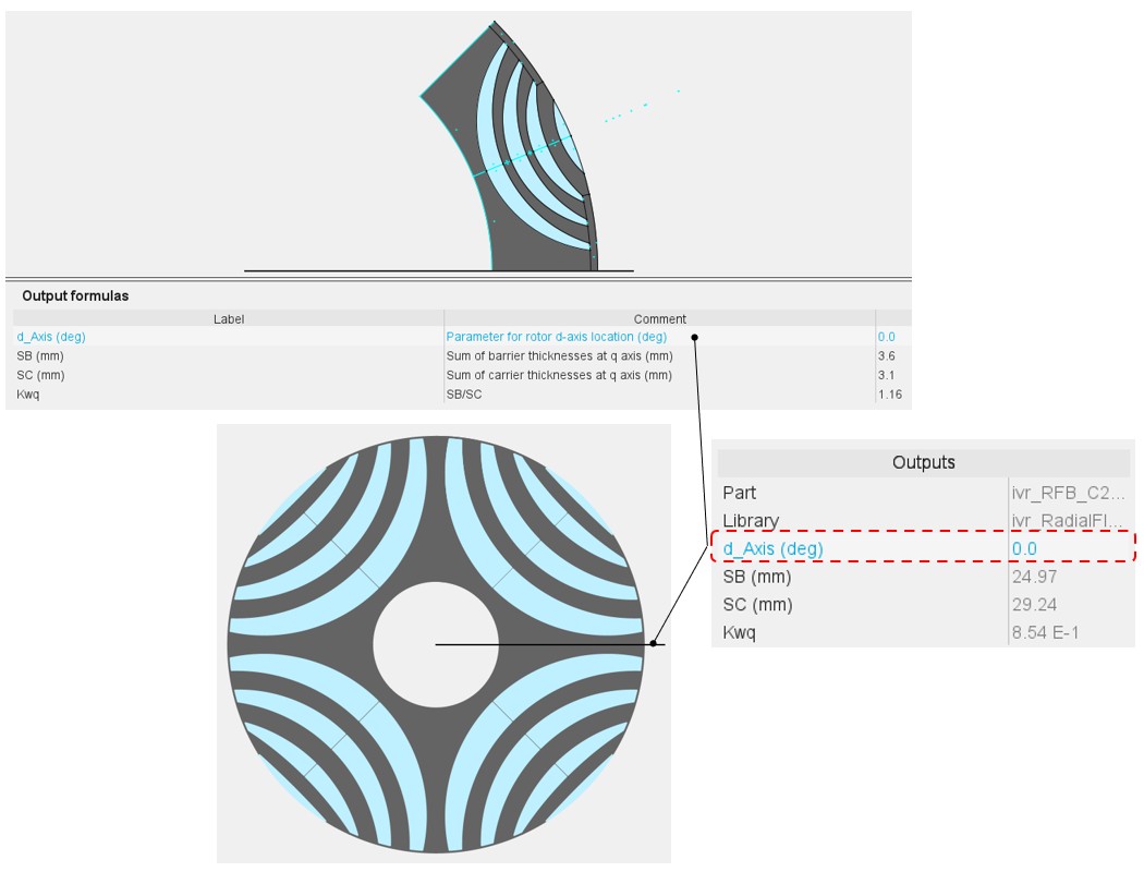 The rotor d-axis location is an output parameter (read only data) of saliency parts. It completes the description of the topology, and it is automatically used to define the relative position between the axis of the stator phase 1 (reference phase) and the rotor D-axis position for performing the tests when needed.