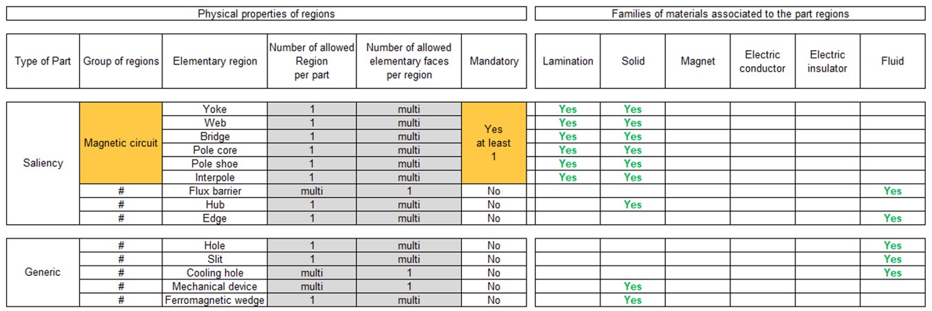 Note: When the regions are grouped (see the group of regions above), the same material is associated with all the regions grouped.Note: The possible materials associated with the regions shown above can help users to see the meaning of elementary regions.