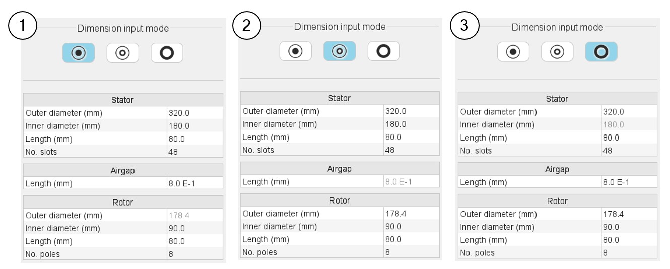 airgap. The inner diameter of the stator is automatically deduced (automatically computed value is displayed in grey color). |