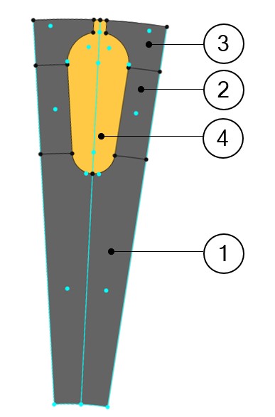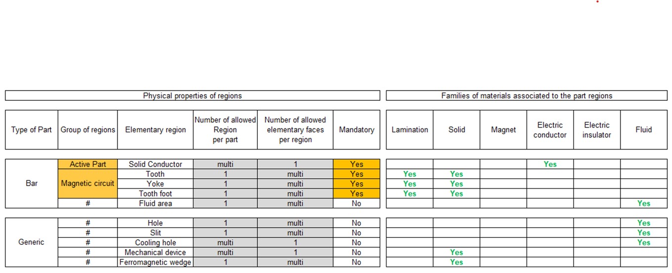 1 Yoke 2 Tooth 3 Tooth foot 4 Solid conductor for describing the squirrel cage Here is the list of possible elementary regions for a bar:- Solid conductor, Tooth, Yoke and Tooth foot illustrated above.