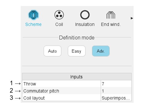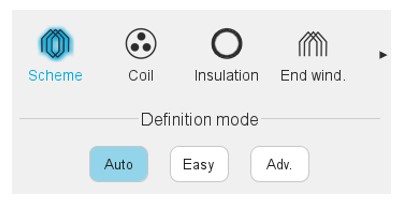| 2 | Winding definition mode: Automatic, Easy, or Advanced. See the below section dedicated to the construction of the winding architecture. |