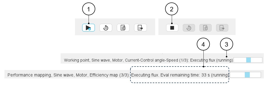 | 2 | The test is running, and one can stop the computation by clicking on the square shape button. |