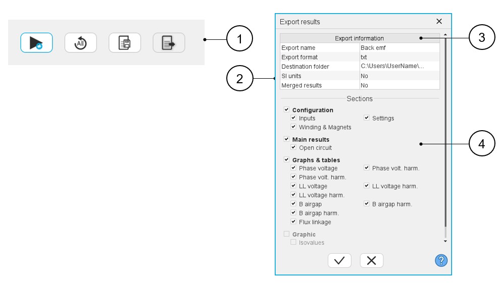| 2 | Dialog box to export test results. See the next chapter for details about the fields in this dialog box. |