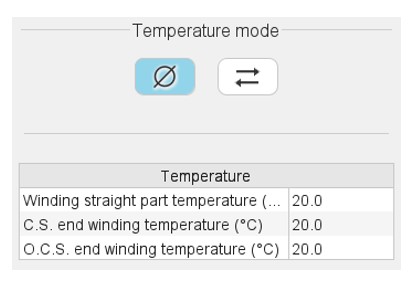 It is possible to define temperature of the three main parts of the stator winding:- Winding active length temperature (part 1)