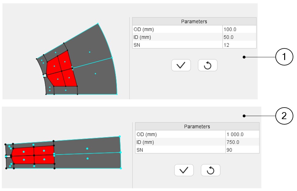 | 2 | Topology and dimensions of a slot with a new set of structural data. The geometry automatically adjusts. |