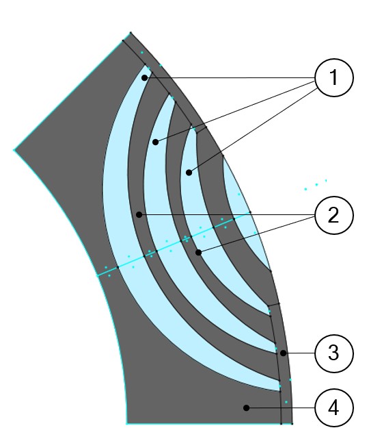 1 Flux barrier 2 Web 3 Bridge 4 Yoke - List of possible elementary regions for an inner saliency.