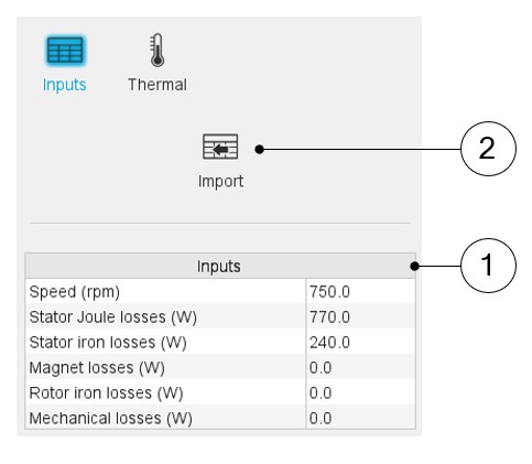 | 2 | Click on the button “Import” to import inputs corresponding to a solved test. All existing data of the selected test will be imported into the inputs of the thermal characterization. The data which does not exist in the outputs of the selected test are set to 0. |