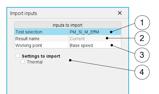 The set of inputs can be imported from another test already performed in Motor Factory Test environment.