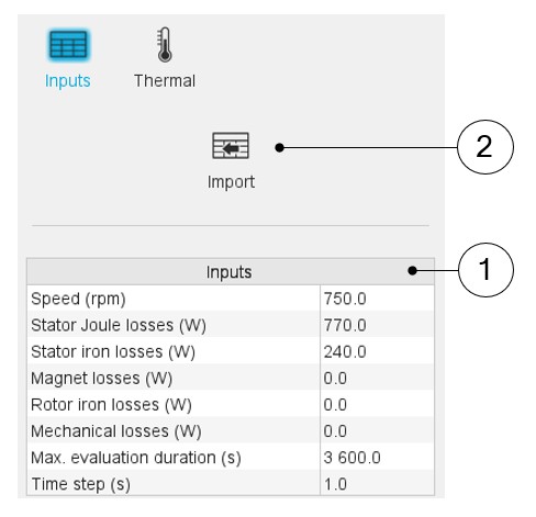 | 1 | Fill in the table to define the speed, all the losses to be considered, the max evaluation duration and the time step. |