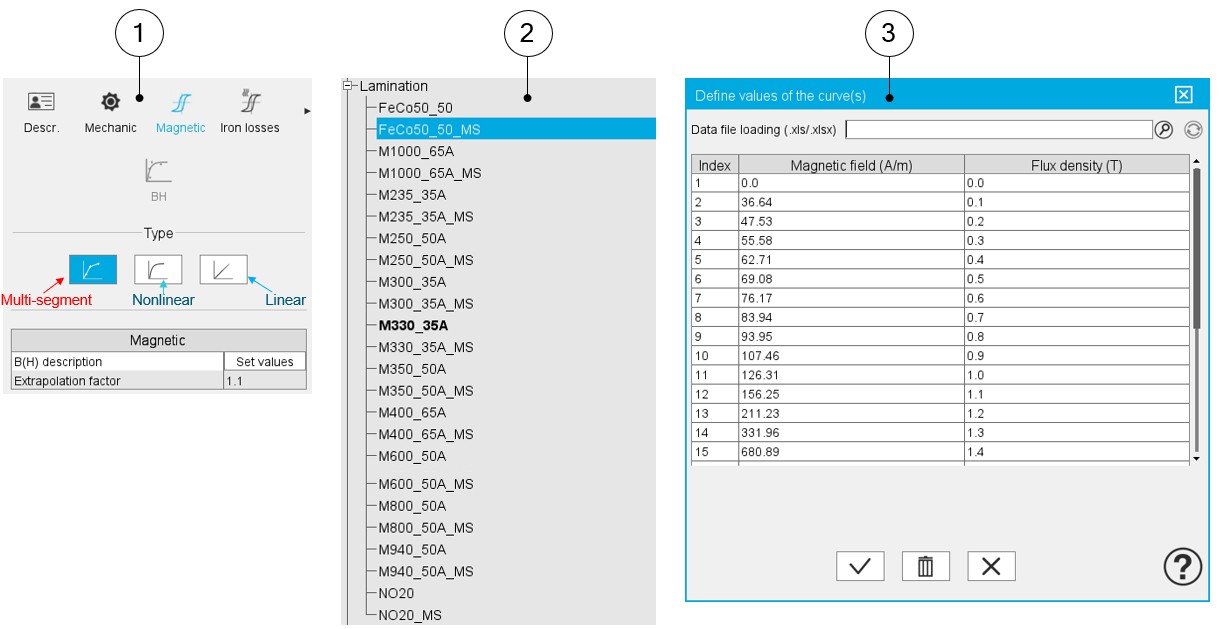 - Multi-segment: by providing a list of B-H points