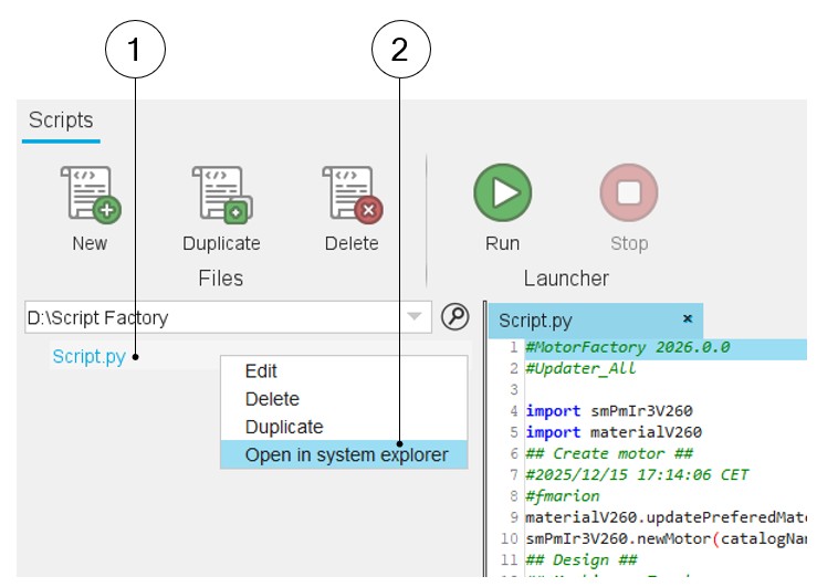 In the Script Factory application, one can reach the selected python file via a dedicated function.