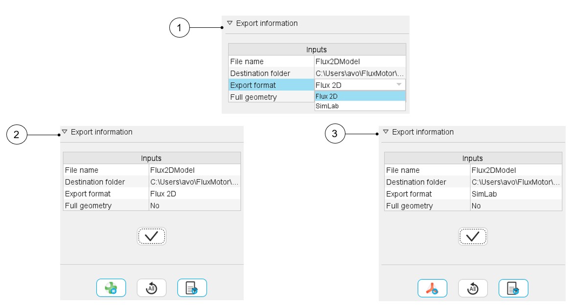 | 1 | Export format with two choices: Flux 2D / SimLab |
