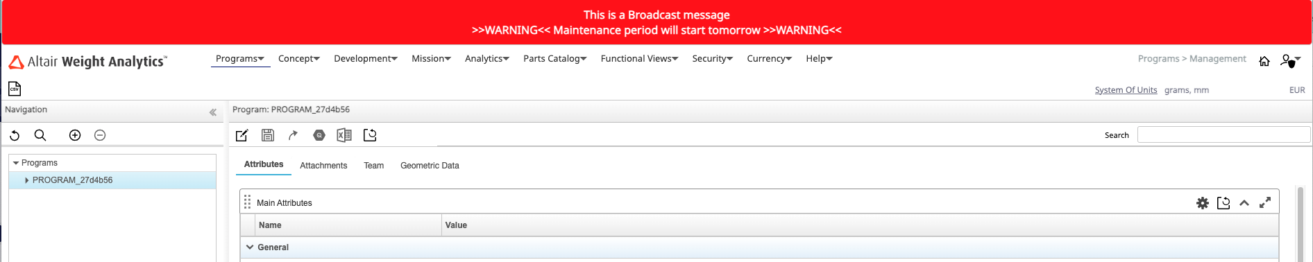 As a WA Administrator, you can insert a warning broadcast message that is immediately visible to all users connected to WA.
