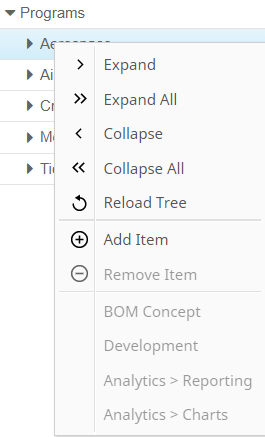 - Remove Item- Select to remove a new Program, Version, Variant, or Product only if the selected item does not have children. Otherwise, this option is disabled.