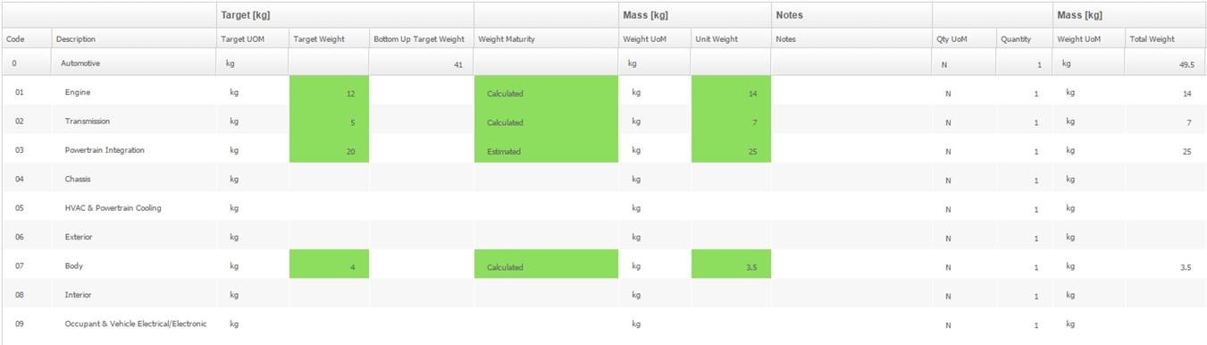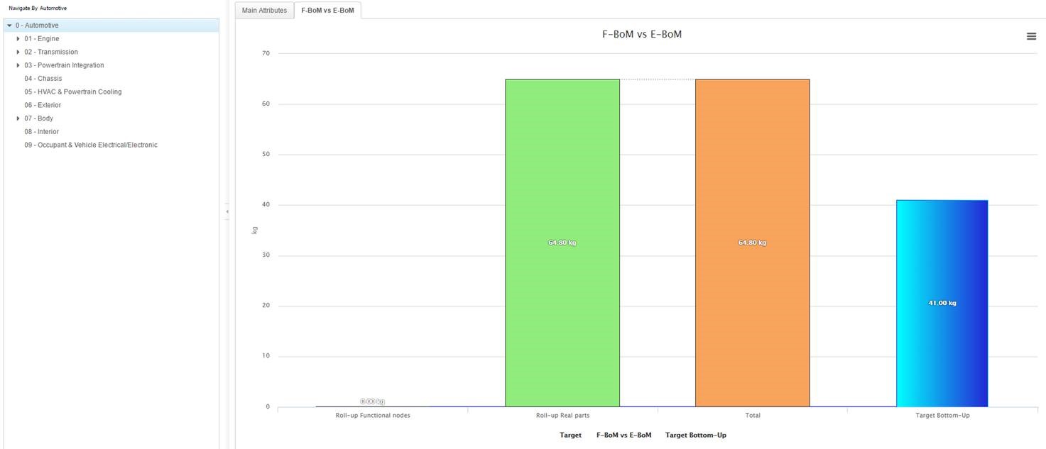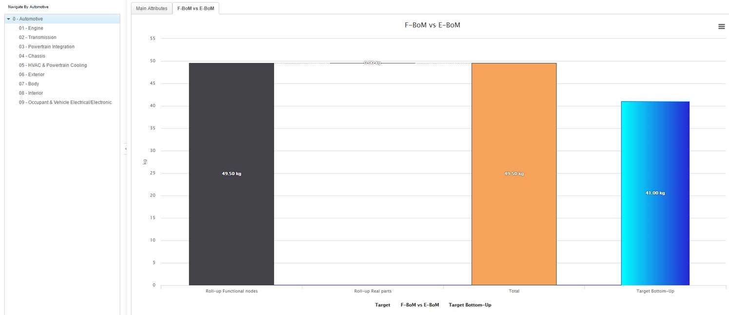 Using this panel, you can compare the portion of the weight which is assigned to the real parts/assemblies to the portion of the weight assigned to the functional tree.