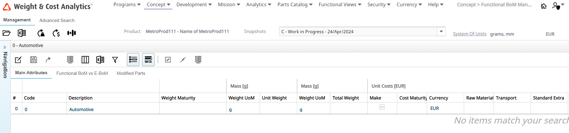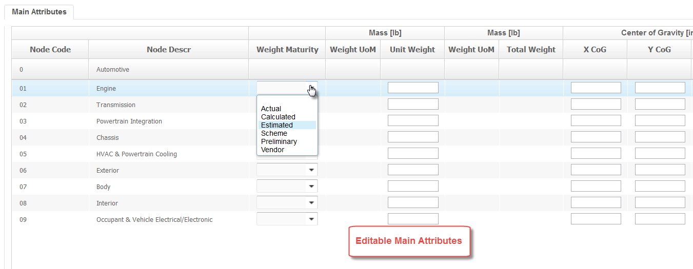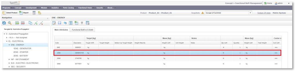 WA allows you to edit and modify the Main Attributes of the Systems added to the Concept.