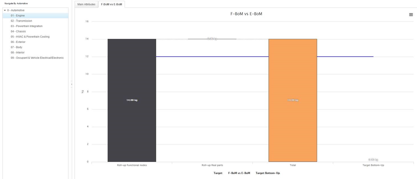 A BoM is a hierarchical structure, commonly not balanced, describing a complex product. A BoM that is created using the Functional View (the granular view of a product) is called a Functional BoM.