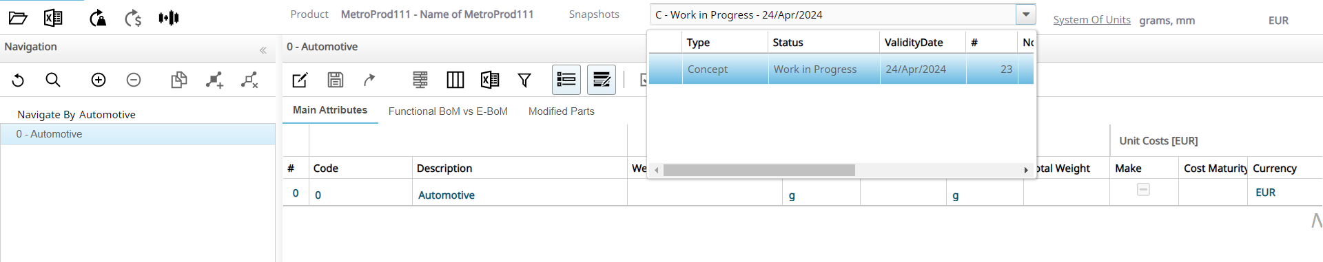WA allows you to define cost attributes for a Product using F-BoM Management.
