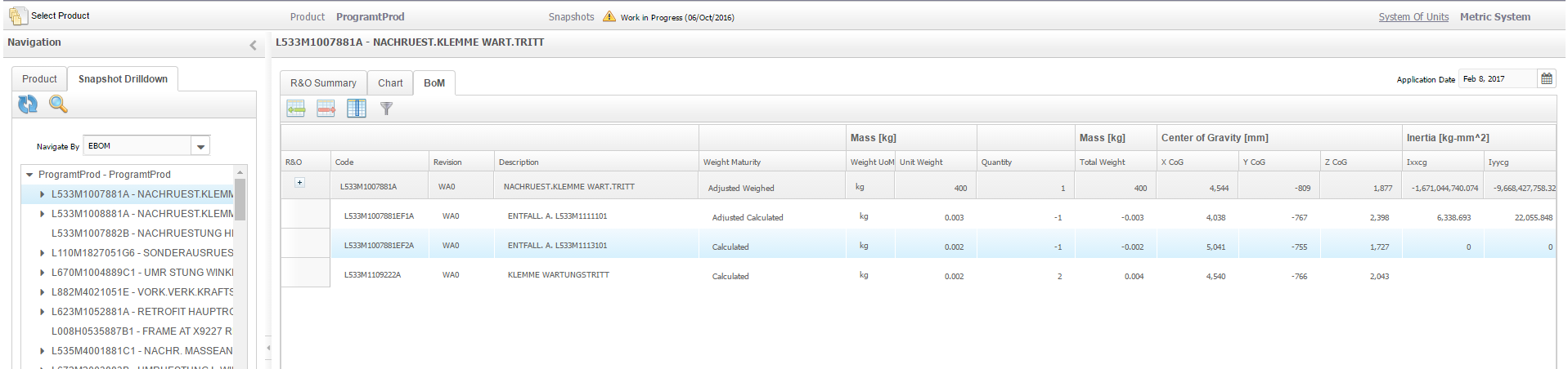to the prediction, determination, management and tracking of the weight, Center of Gravity, and Moment of Inertia