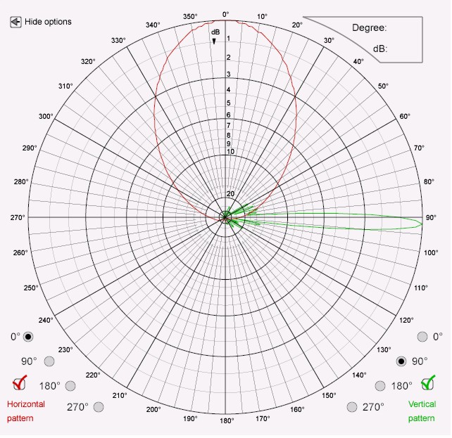 The antenna 741 794 is a sector antenna with 65° horizontal and 7° vertical half-power beam width and 2° electrical downtilt. The horizontal and vertical patterns of this antenna are given in Figure 1 while the real, measured, 3D pattern is visualized in Figure 2. The sketch of the 3D pattern is taken from a side view, the main lobe of the antenna characteristic is oriented towards the right. The views in Figure 3 represent the interpolated 3D patterns for the four different interpolation algorithms. Similar to the measured 3D antenna pattern also these figures show the side view of the antenna with the main lobe oriented towards the right.
