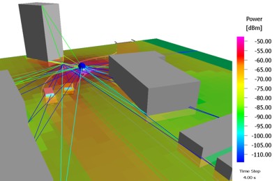 The following example shows a time-variant car-to-car communication scenario with a transmitter mounted on top of a moving vehicle: