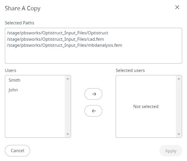 Note: To unshare a copy of the files or folders from the user, select the user from the Selected Users list and click
