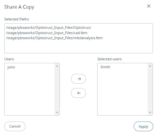 The Share a Copy dialog box is displayed.Figure 2. Share a Copy with Users