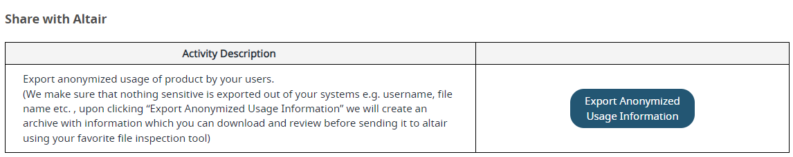 Click Export Anonymized Usage Information.