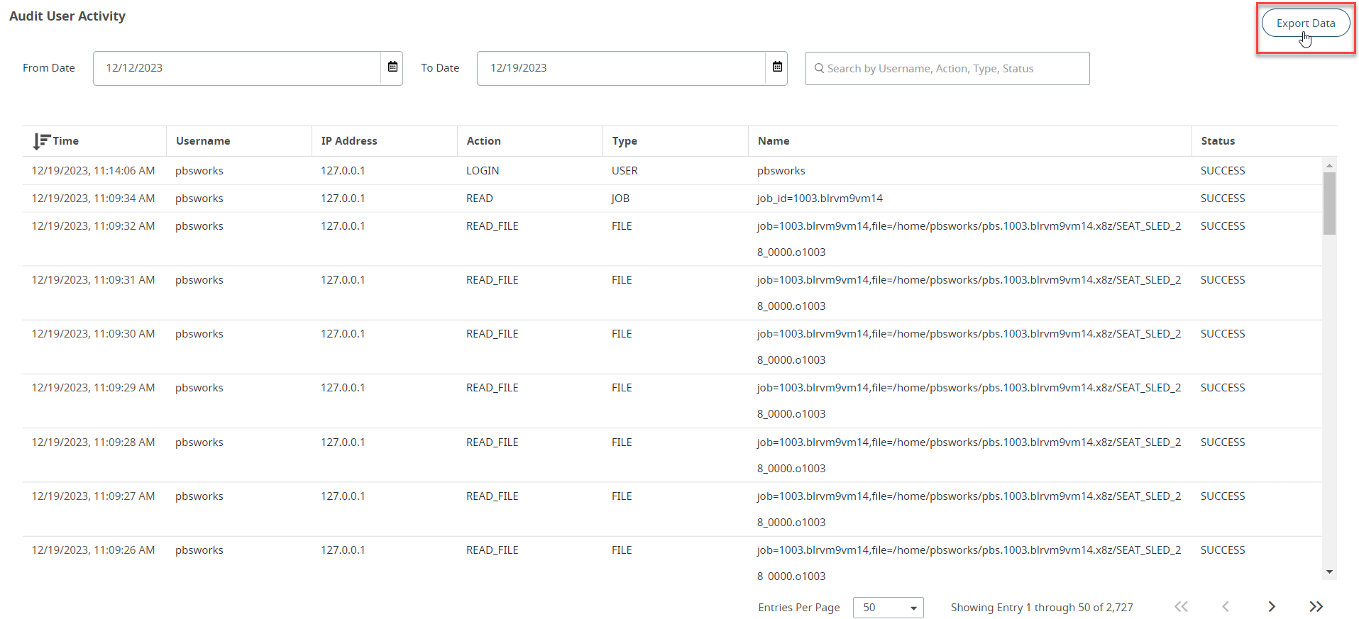 Figure 2. Audit User Activity - Export Data