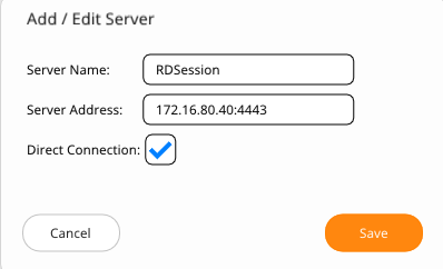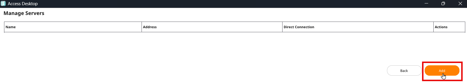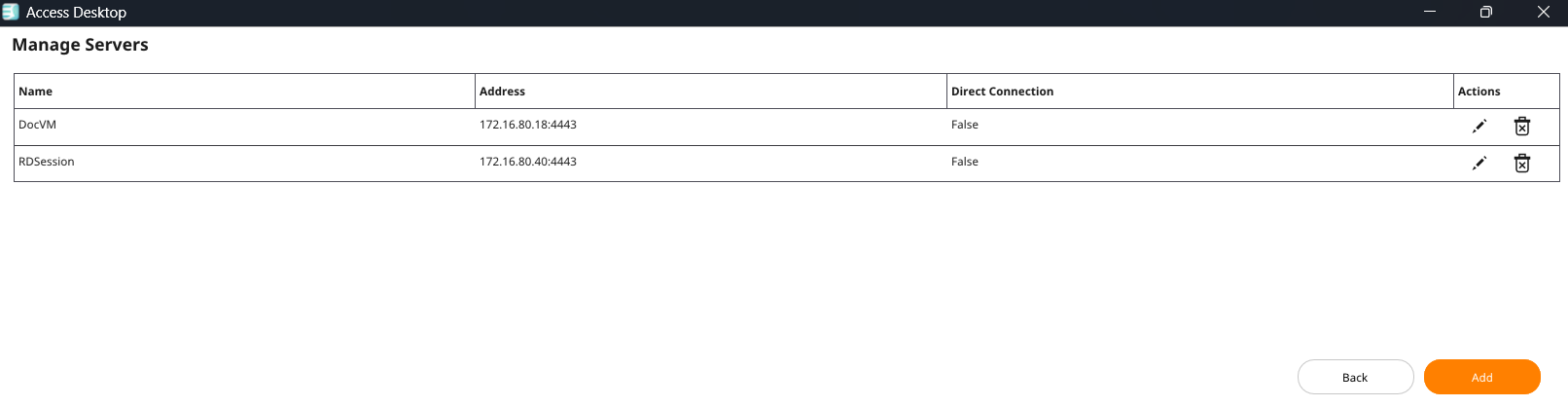 ) the server that is added. - Click Back to go to Access Desktop client screen.