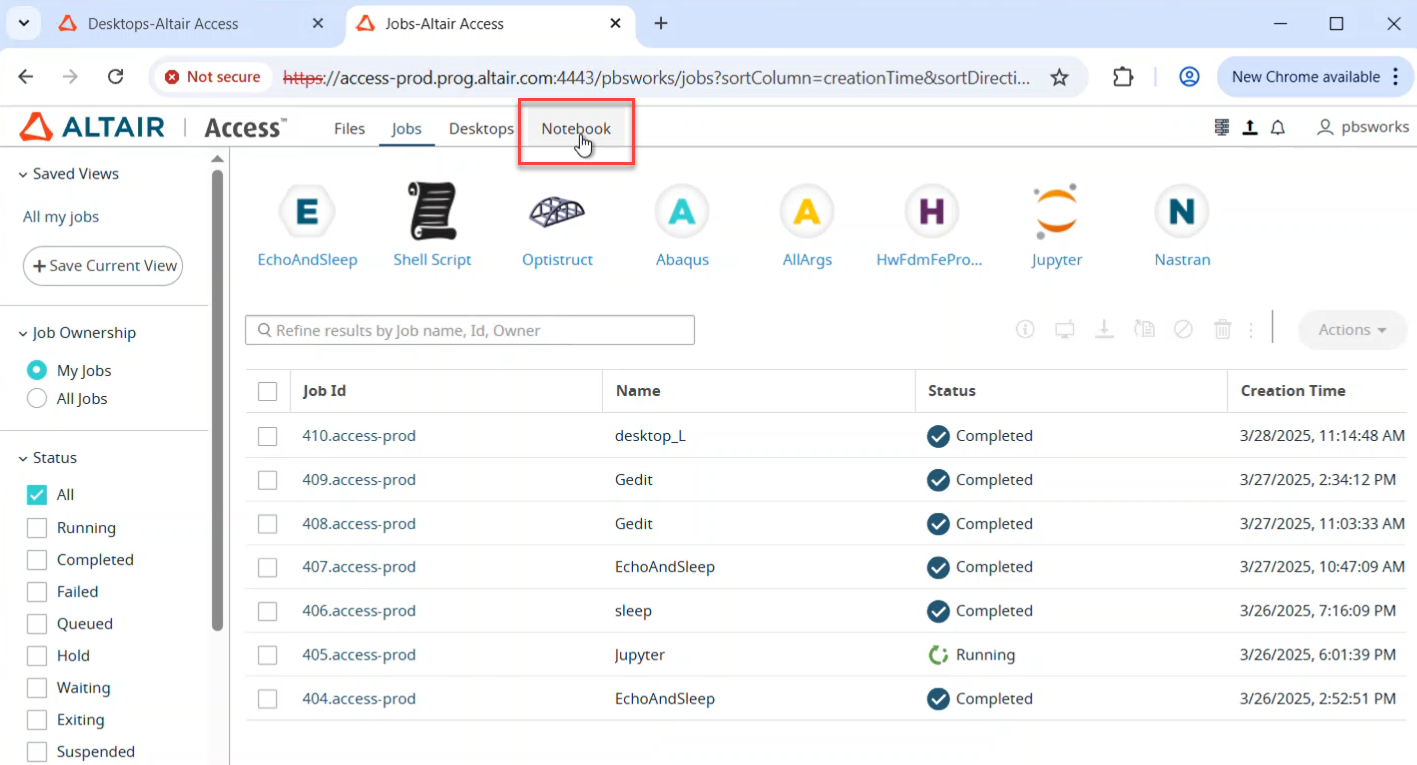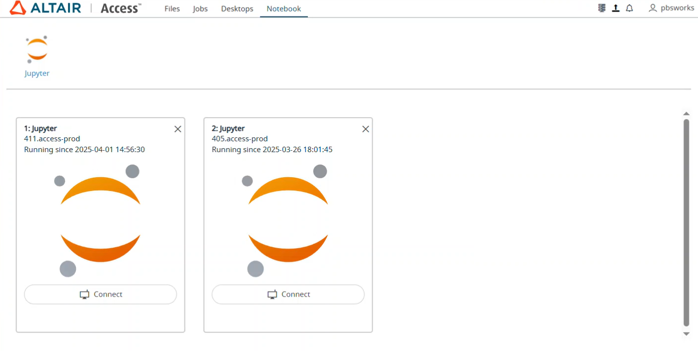 By default, the Jupyter Notebook sessions list is displayed in the Tile view.