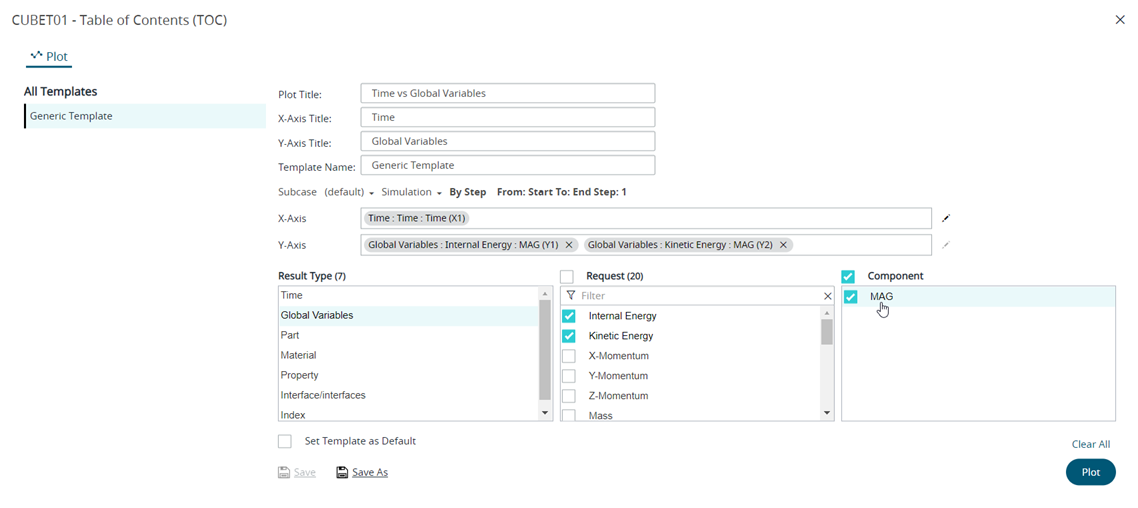 - Optional: Click Set Template as Default check box to set this template as a default template. The next time you open result files of the same format, the template will be applied and the plot will be automatically generated.